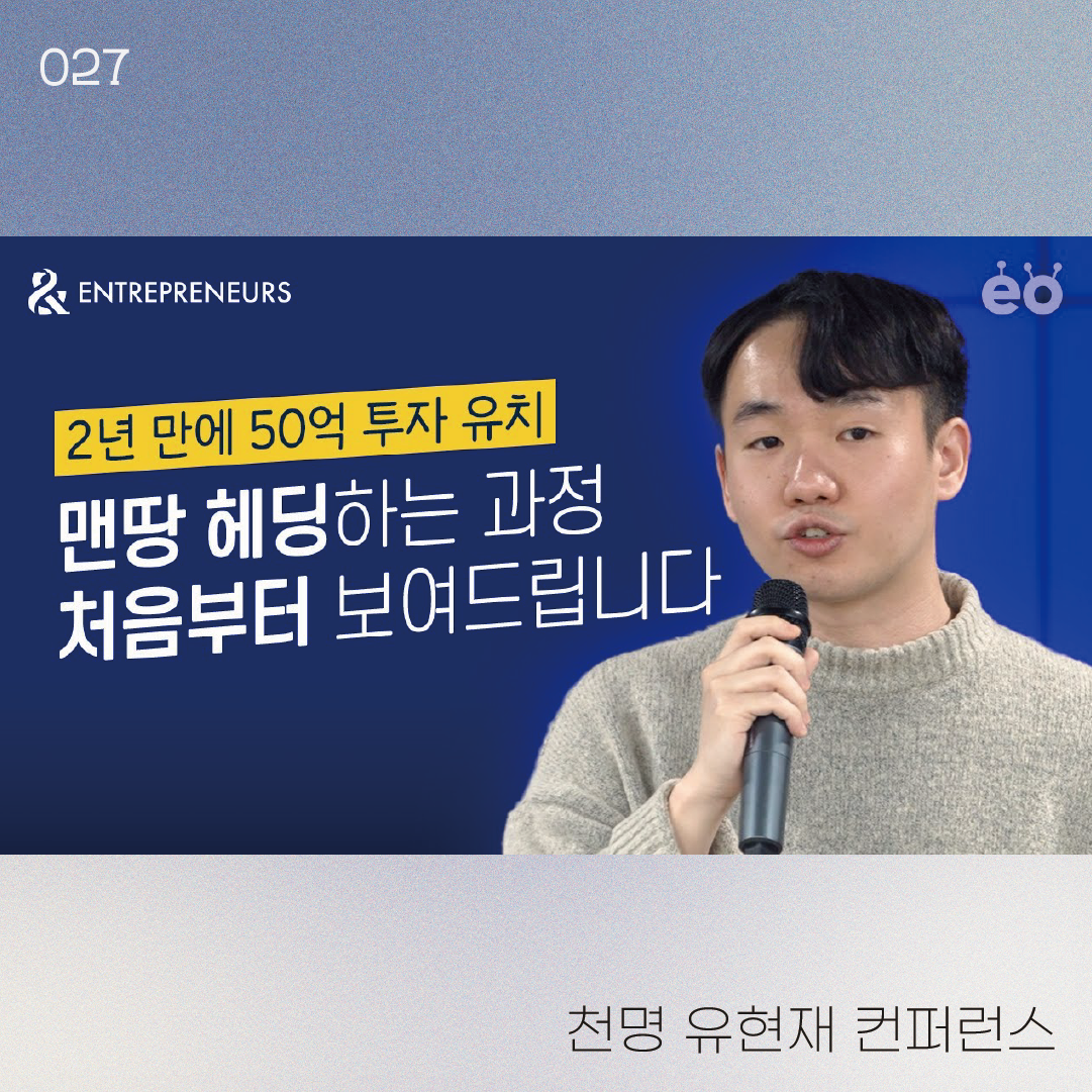 초기 창업자들이 가장 많이 하는 고민 중 하나가 바로 시장과 아이템입니다. 어떤 시장에서 1등을 할 수 있을지, 유니콘 기업이 나올 수 있을지 고민하는데요 아무도 손대지 않던 이 시장에서 천명 유현재 대표가 어떻게 기회를 발견하고 가설 검증을 해나갔는지, 맨땅에 헤딩하는 스토리를 들려주었습니다. EO에서 창업가를 위한 컨퍼런스 Entrepreneurs 를 만들어나가고 있습니다-! 유현재 대표님과 같은 창업가들의 구체적인 이야기가 궁금하시다면 Entrepreneurs 다음 회차 오픈 알림 신청하기